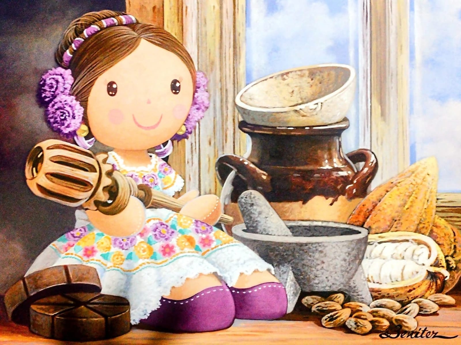 A lo largo de su trayectoria, Benítez ha logrado capturar el alma de México a través de elementos cotidianos cargados de identidad. En esta obra, Chocolatera Ternura, nos transporta directamente a la intimidad del hogar mexicano, donde una taza de chocolate no solo es bebida, sino un ritual que abraza generaciones. Cada color, cada sombra, nos recuerda por qué el arte puede ser también un acto de ternura.