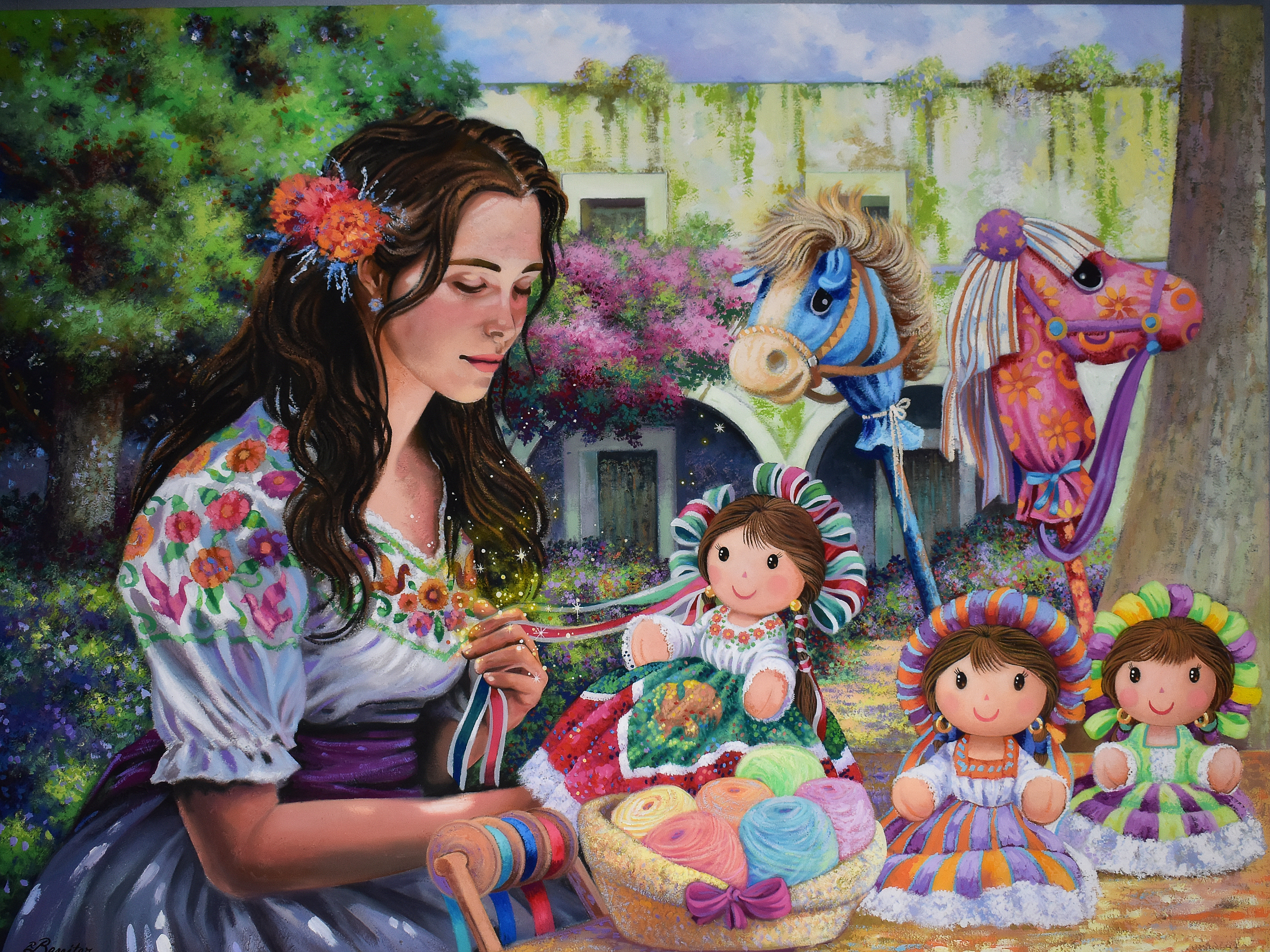 Tejedora de Alegría es una obra maestra del renombrado artista Roberto Benítez. Con una paleta vibrante y técnica meticulosa, Benítez captura la esencia de la alegría y la felicidad en cada pincelada.